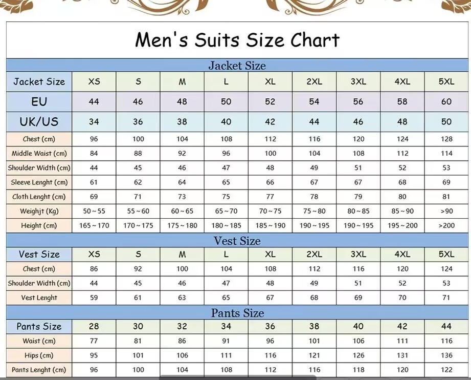 2.Mens size chart